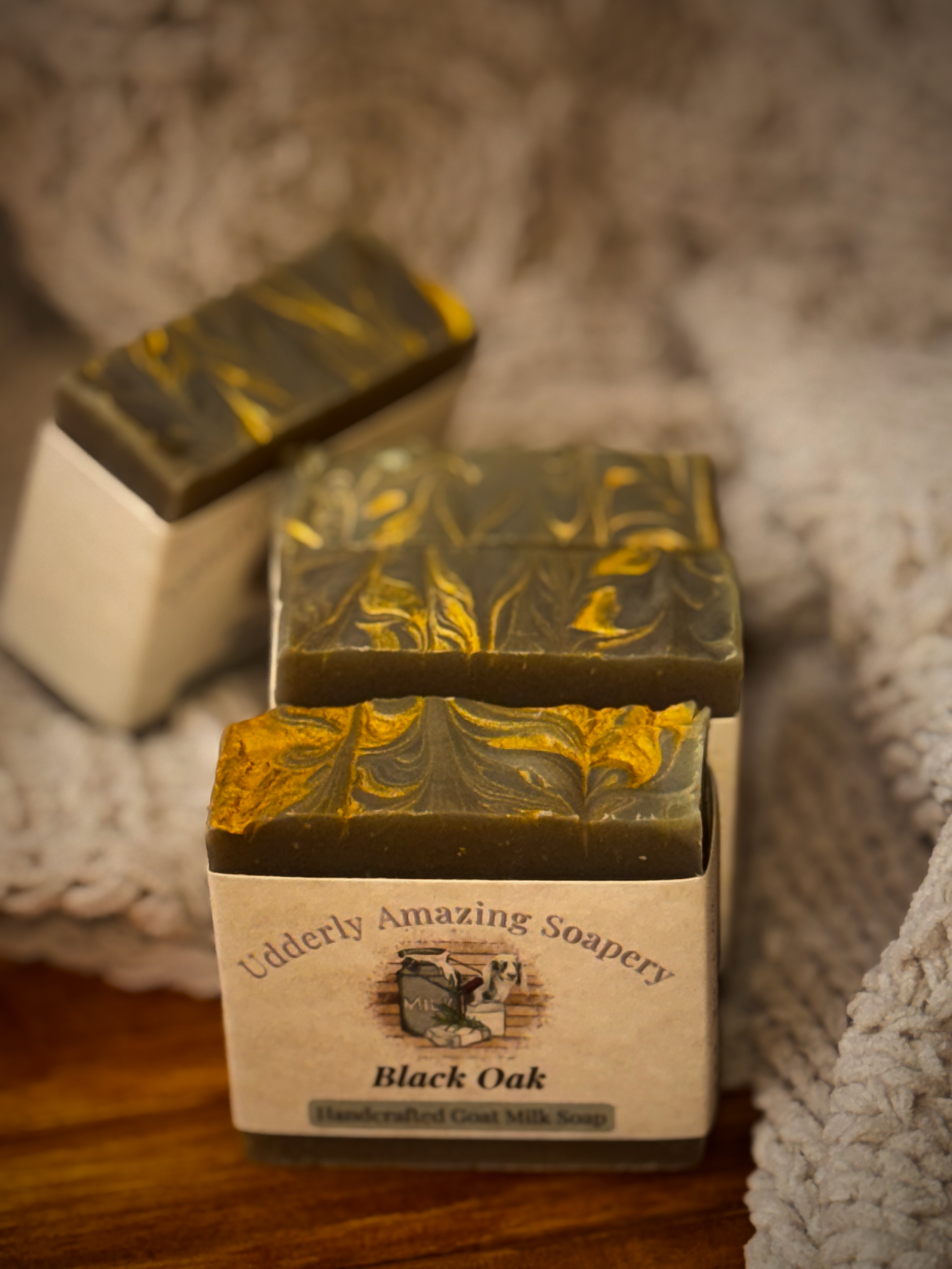 A deep, alluring cleanse, our Black Oak Goat Milk Soap is handcrafted with fresh goat milk and a luxurious blend of oils to create a scent that is smooth, confident, and irresistibly masculine. This bar blends warmth with sophistication—perfect for those who love a fragrance that feels both rugged and refined.
