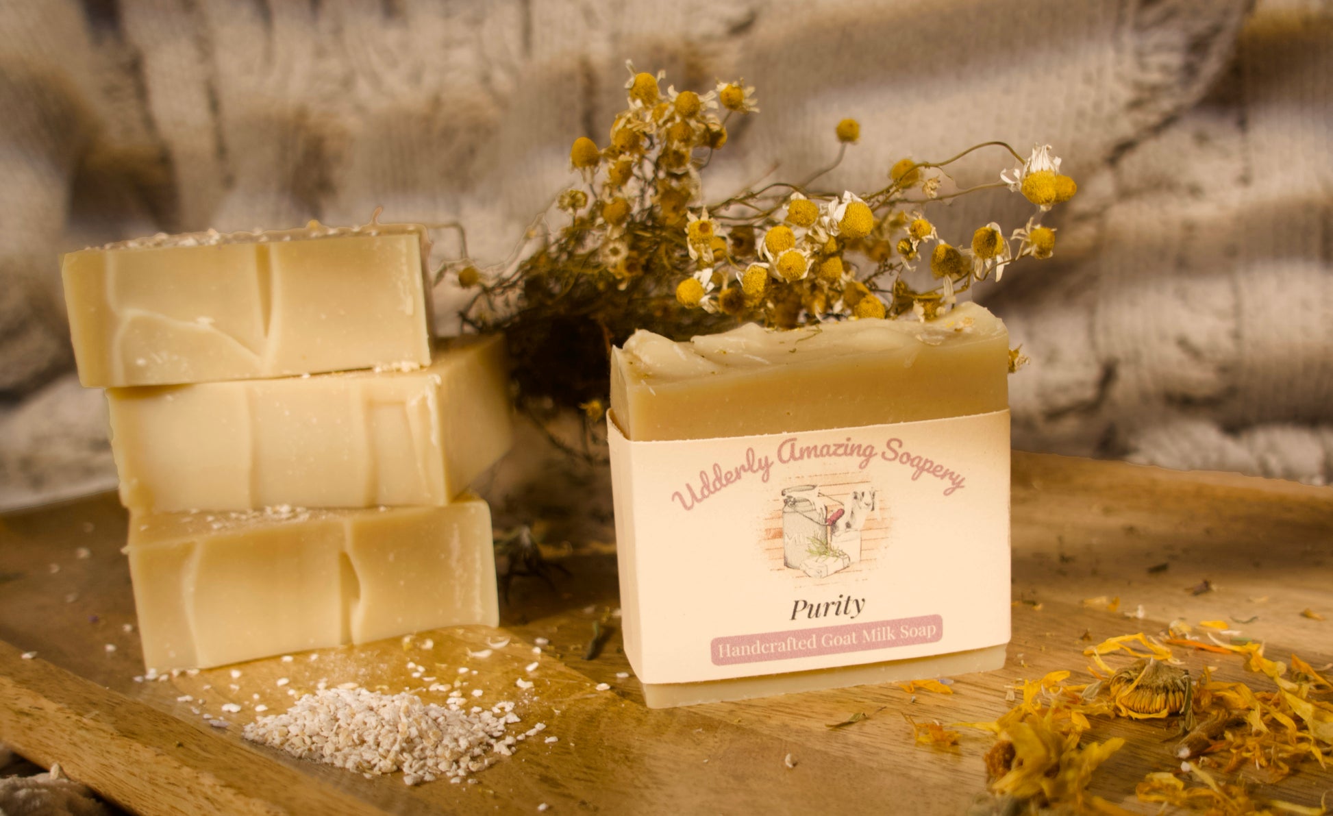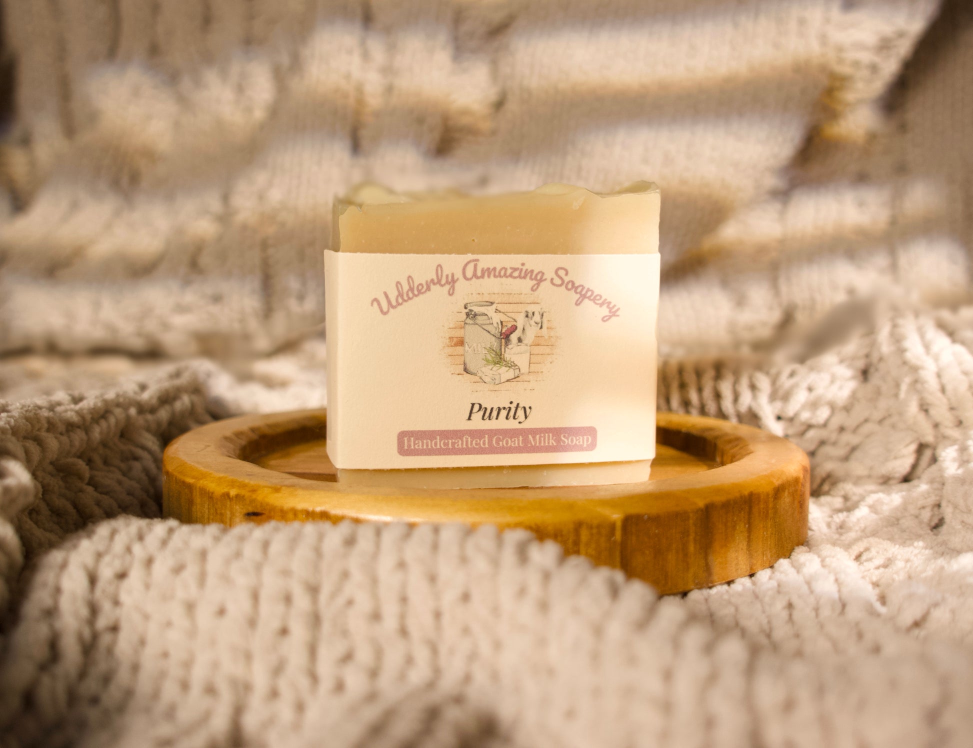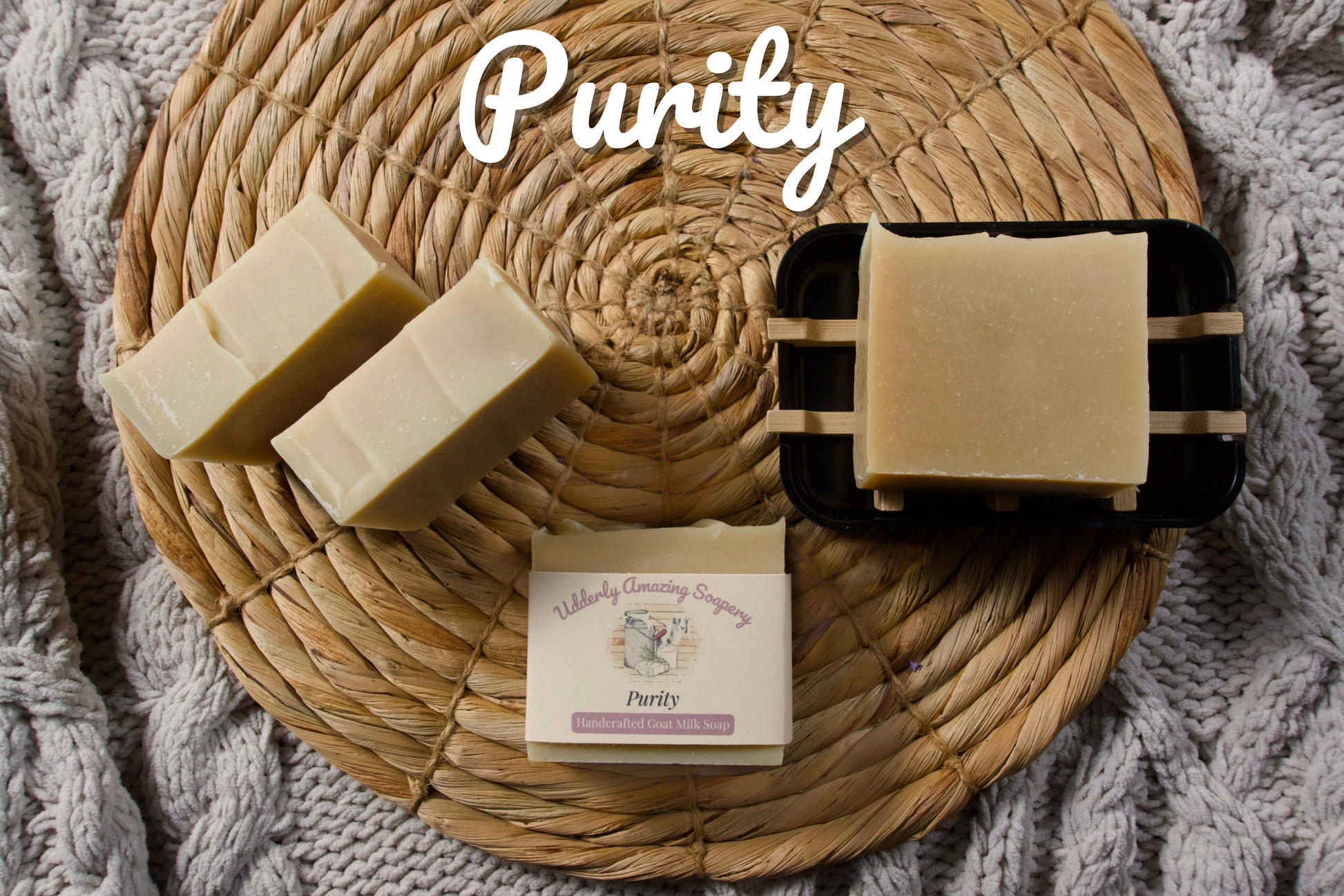Simple, gentle, and naturally nourishing—our Purity Goat Milk Soap is crafted for those who appreciate the beauty of minimal, high-quality ingredients. Unscented and free from essential oils, this bar features olive oil infused with chamomile and calendula, blending the soothing essence of these botanicals into a creamy, gentle lather.